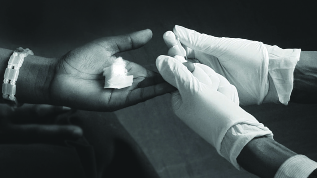 A student receives an HIV test upon completion of an AIDS workshop in Ethiopia sponsored by the White Feather Foundation. Photo by James R Wilson/ DC
