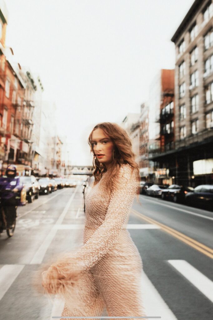 Zo is passionate about fashion. For the momentous occasion of Velvet Rouge’s debut EP, she partnered up with Kate March, the founder of UNDONE by Kate. Zo and Kate have been collaborating all year to create the perfect piece for Zo to wear for the EP release party. Zo fell in love with the looks that Kate made for Selena Gomez. “Kate March is a master at what she does…I feel so comfortable in my own skin. As a woman, it has changed the game for my performances because I no longer have to fear if it will look good on me because it is made for me with the intention in mind of what I like and don’t love about my body,” Zo describes. The inspiration behind the look that Zo wanted is from Miley Cyrus’ dress in the music video ‘Doctor’ with the flowing tendrils at the hem. While giving out some ideas, Zo gives all of the credit to Kate for the concept and design of her outfit.