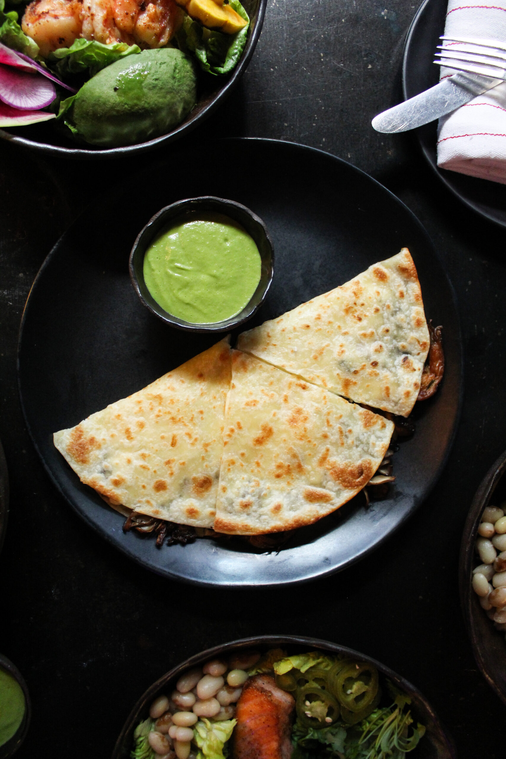 Shaved beef quesadilla with jalapeño salsa. Photo via abc Cocina.