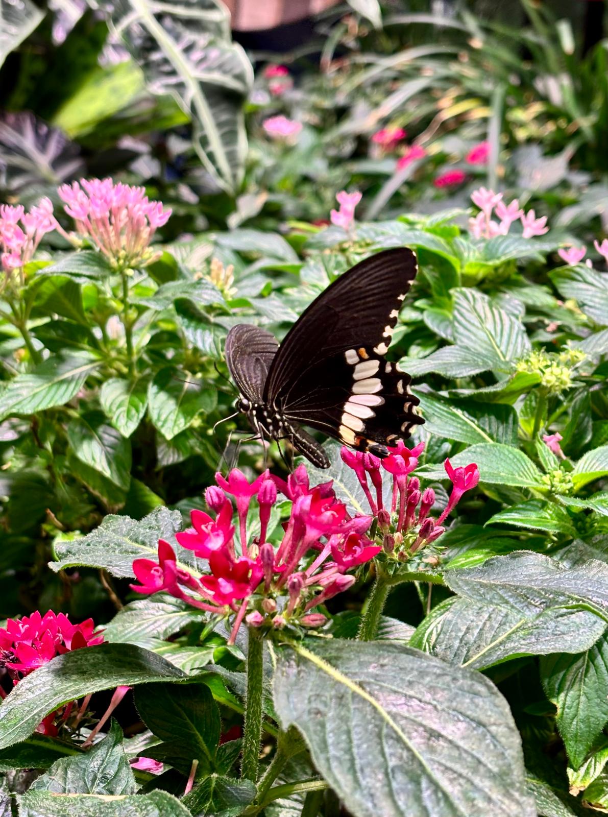 The room is kept warm at around 80 degrees Fahrenheit, with high humidity to mimic a rainforest environment, so it is best to wear light clothing and be prepared to remove your jacket once inside. As you wander through, take your time observing the many species gliding through the air or resting on leaves and flowers, and stop by the pupae incubator to see chrysalises up close or catch a butterfly emerging for the first time.