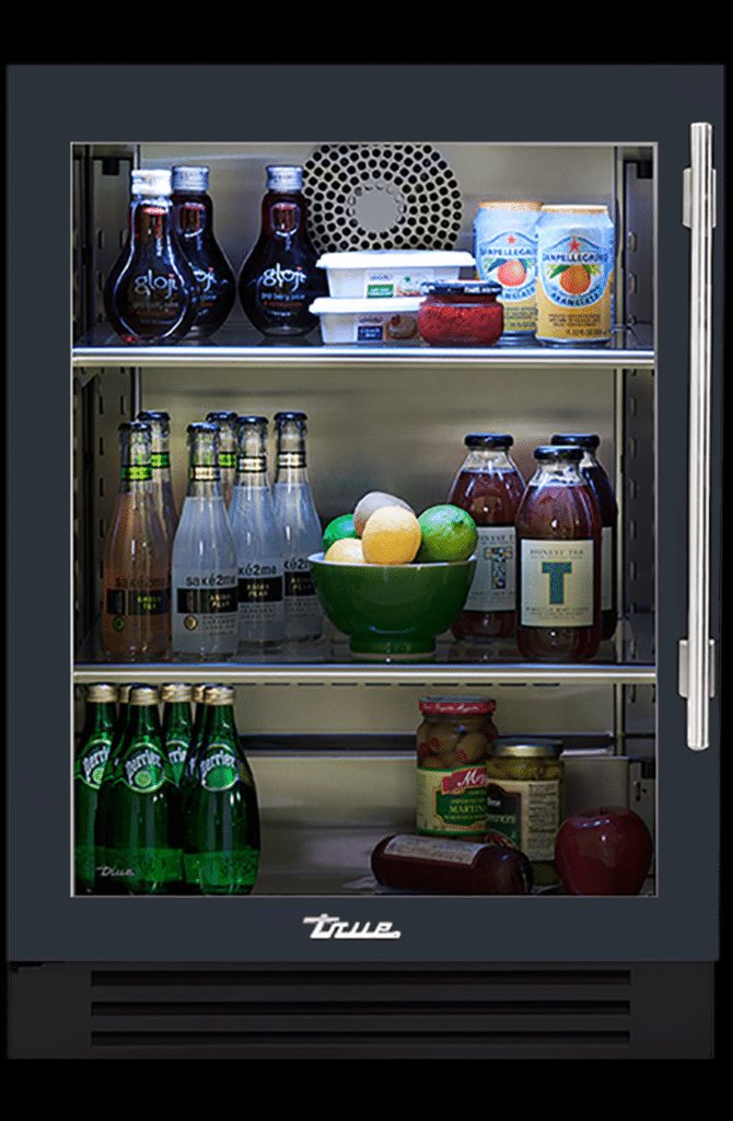 TRUE RESIDENTIAL’S UNDERCOUNTER BEVERAGE CENTER (pictured here in Juniper) has two adjustable/removable stainless steel encapsulate glass shelves. Also comes in other colors. Prices vary. true-residential.com