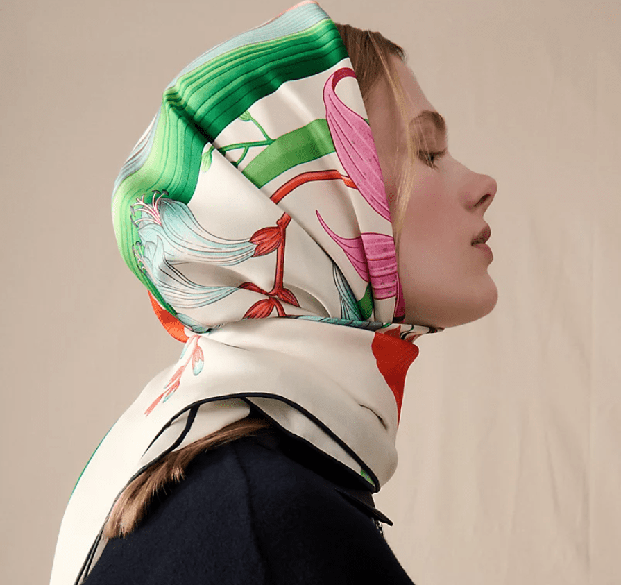 HERMES BOUQUET FINAL This 90 silk scarf, designed by Katie Scott, is a firework of color and floral beauty, with tulips, forget-me-nots, and lilies. Made in France. Dimensions, 34.8” x 34.8”. hermes.com